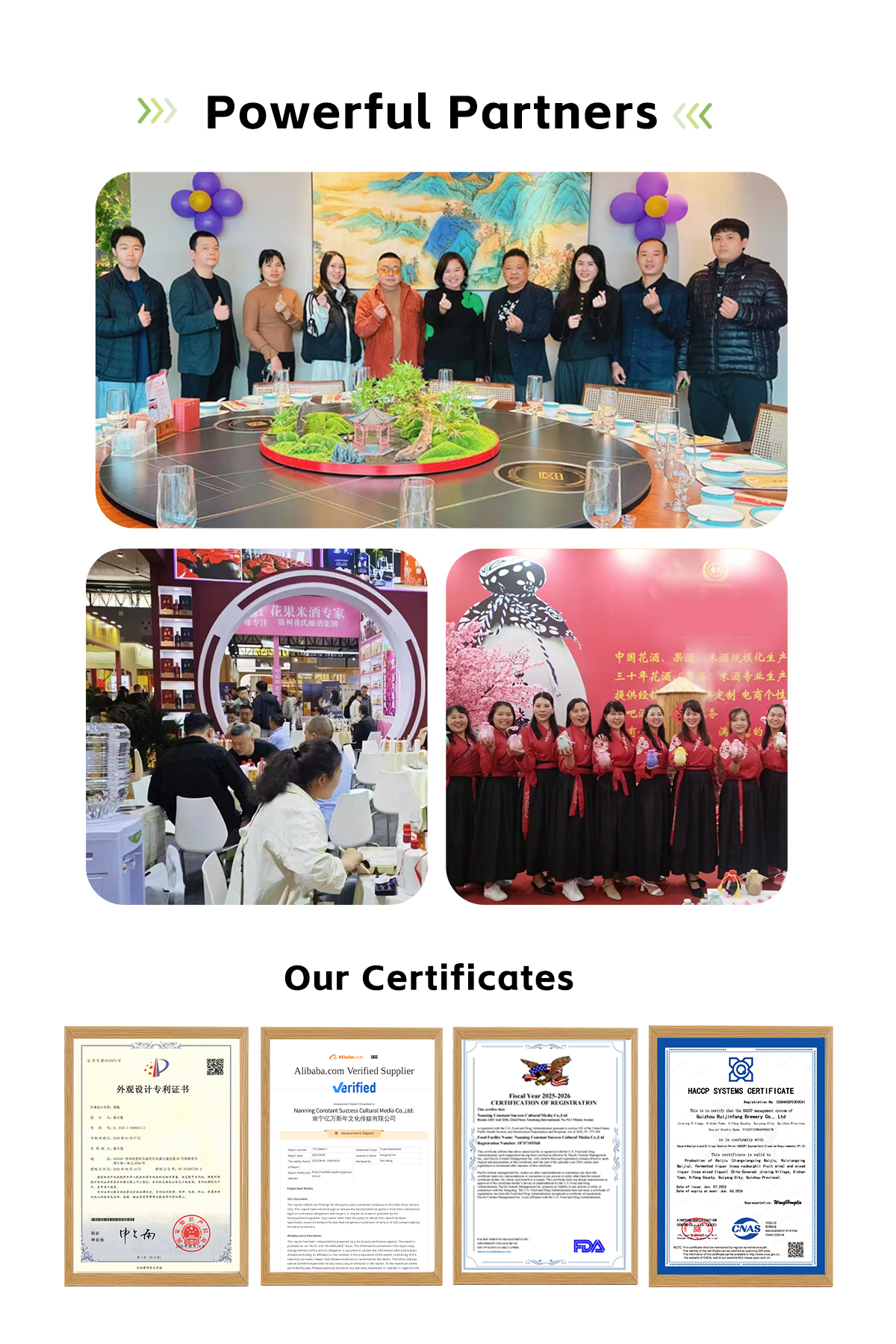 Our products are natural and healthy, fermented from pure fruits, without preservatives, with diverse flavors that are suitable for a variety of people's tastes. We can customize high aesthetic bottle designs that are suitable for photo and social sharing. We use traditional brewing techniques and combine them with regional specialty fruits to pursue beauty and health. High quality, good life.